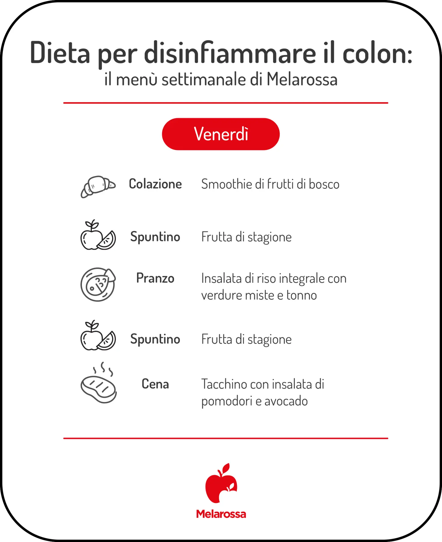 | Colazione | Smoothie verde con banana, spinaci e latte di mandorla |